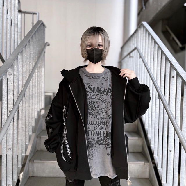 【BACKSTAGEPASS】(バックステージパス) TRIPLE DAGGER HOODIE(トリプル ダガー フーディー)ビッグシルエット ジップアップ パーカー