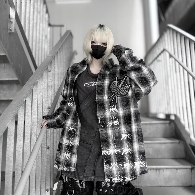 【BACKSTAGEPASS】(バックステージパス) BACKSTAGE PASS(バックステージパス) ZERO PYRAMID(ゼロ ピラミッド)オーバーサイズ オンブレーチェックシャツ