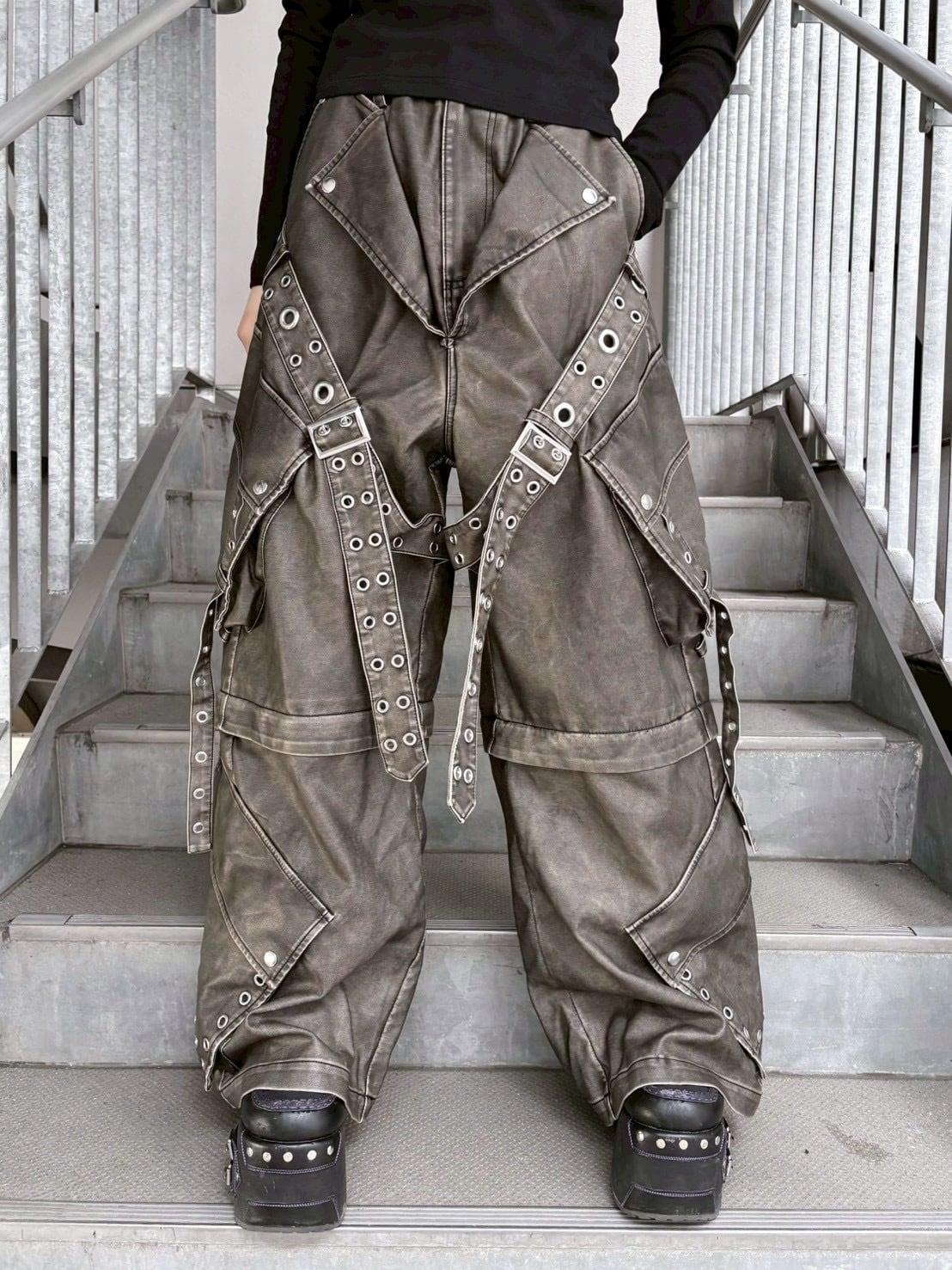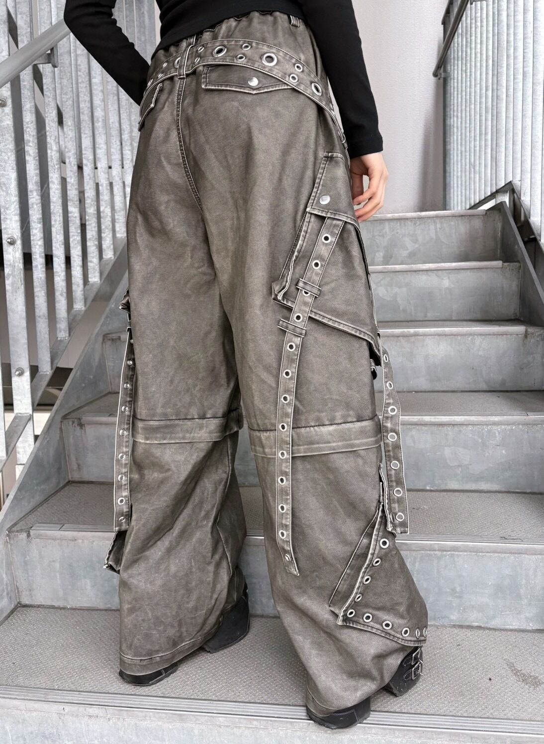 【BACKSTAGEPASS】(バックステージパス) CHRIS C(クリス C)2WAY ベルト レザータッチ/デニム ワイドカーゴパンツ