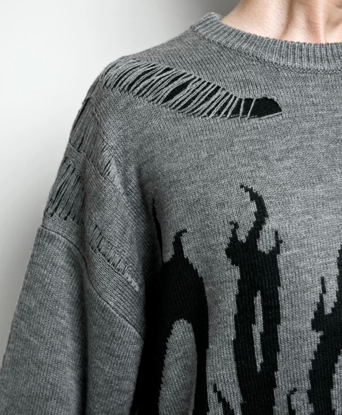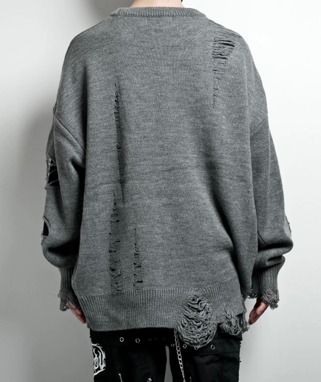【BACKSTAGEPASS】(バックステージパス) MONTEREY(モントレー)ロゴジャガード オーバーサイズ ダメージニット