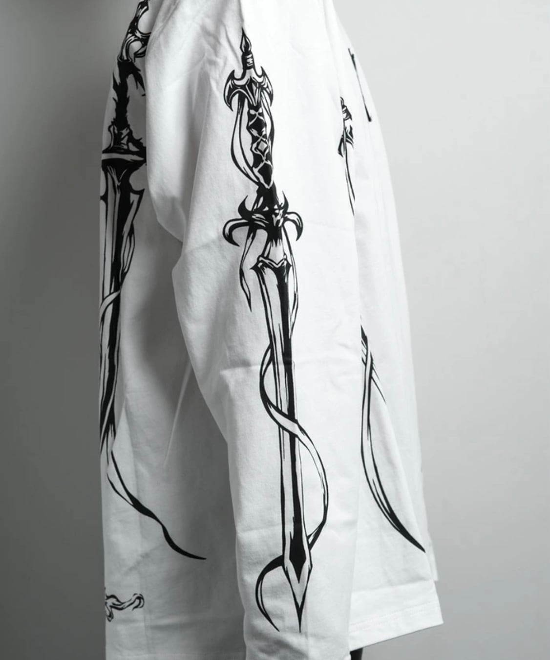 バックにもインパクトあるトリプルダガーモチーフをプリントを施しました。