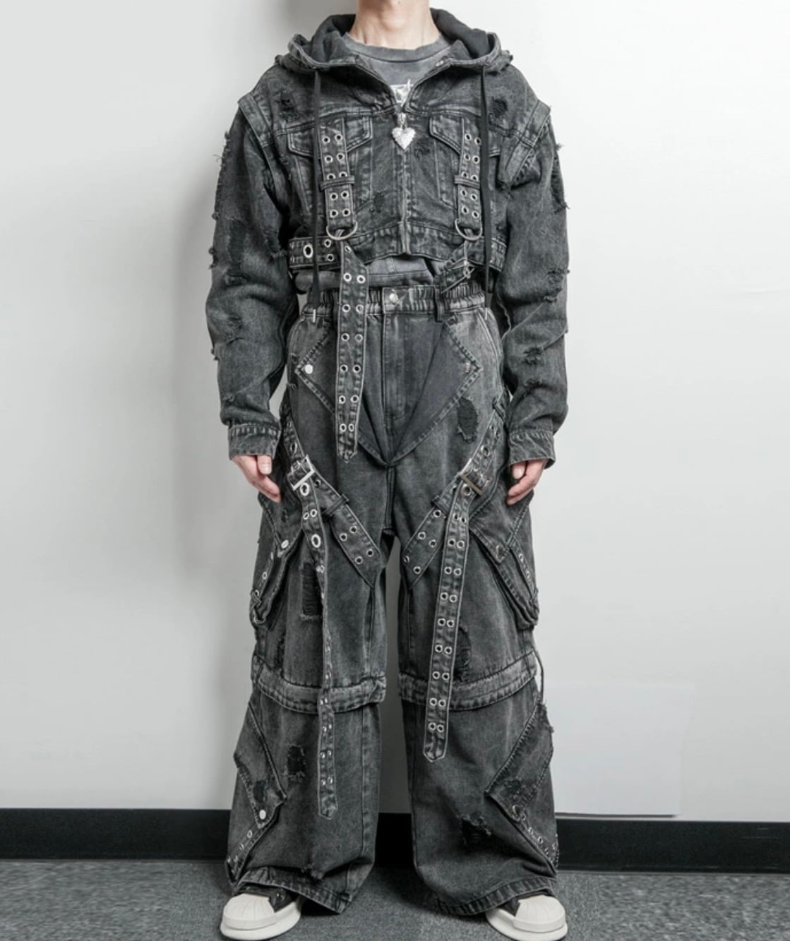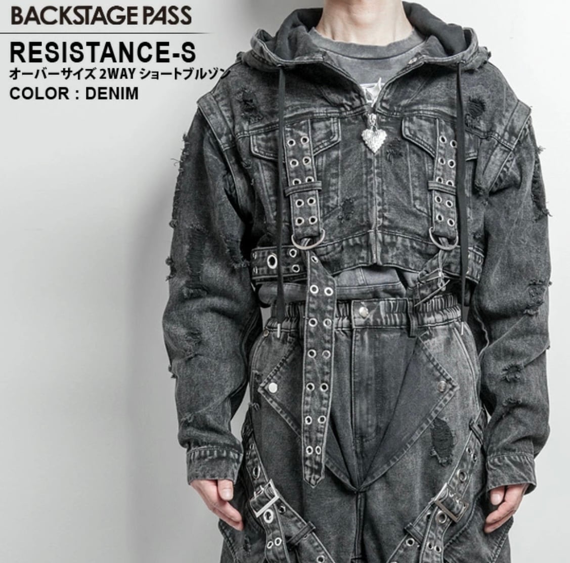【BACKSTAGEPASS】(バックステージパス) RESISTANCE-S(レジスタンス-ショート)2WAY フード レザータッチ/デニム ショート丈ブルゾン