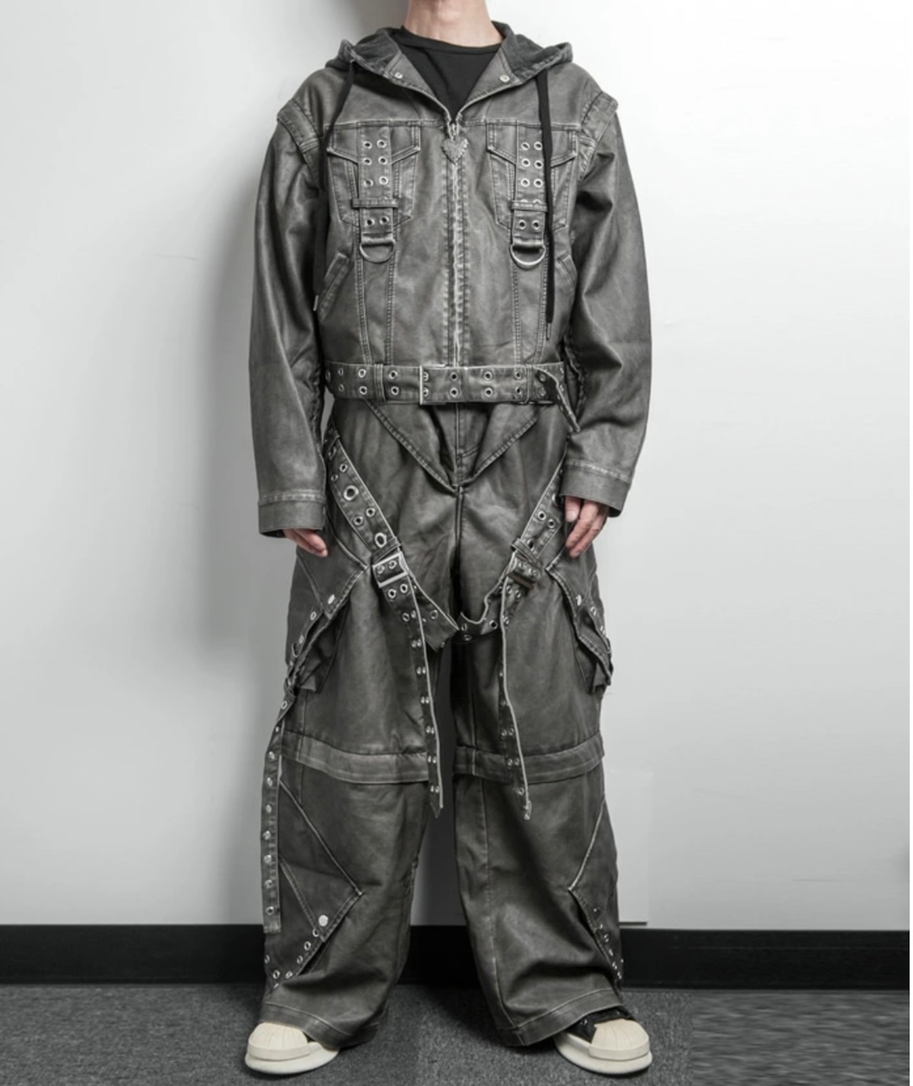 【BACKSTAGEPASS】(バックステージパス) RESISTANCE(レジスタンス)2WAY フード レザータッチ/デニム ブルゾン