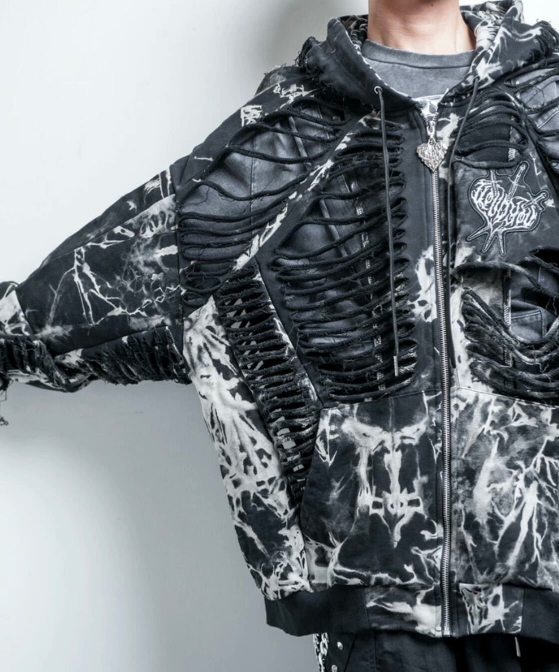 【BACKSTAGEPASS】(バックステージパス) BACKSTAGE PASS(バックステージパス) DESTROY HOODIE-VEIN(デストロイフーディー ヴェイン) スケルトンダメージ ジップアップ クラッシュパーカー