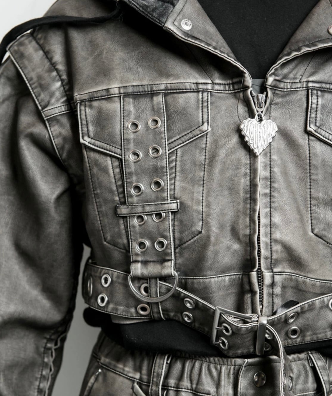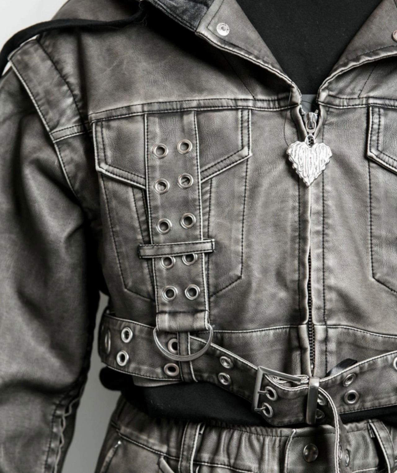 【BACKSTAGEPASS】(バックステージパス) RESISTANCE-S(レジスタンス-ショート)2WAY フード レザータッチ/デニム ショート丈ブルゾン