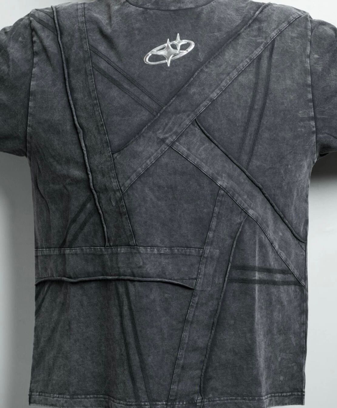 フロントには五芒星をイメージしたパッチワークと立体ロゴアップリケを配置。