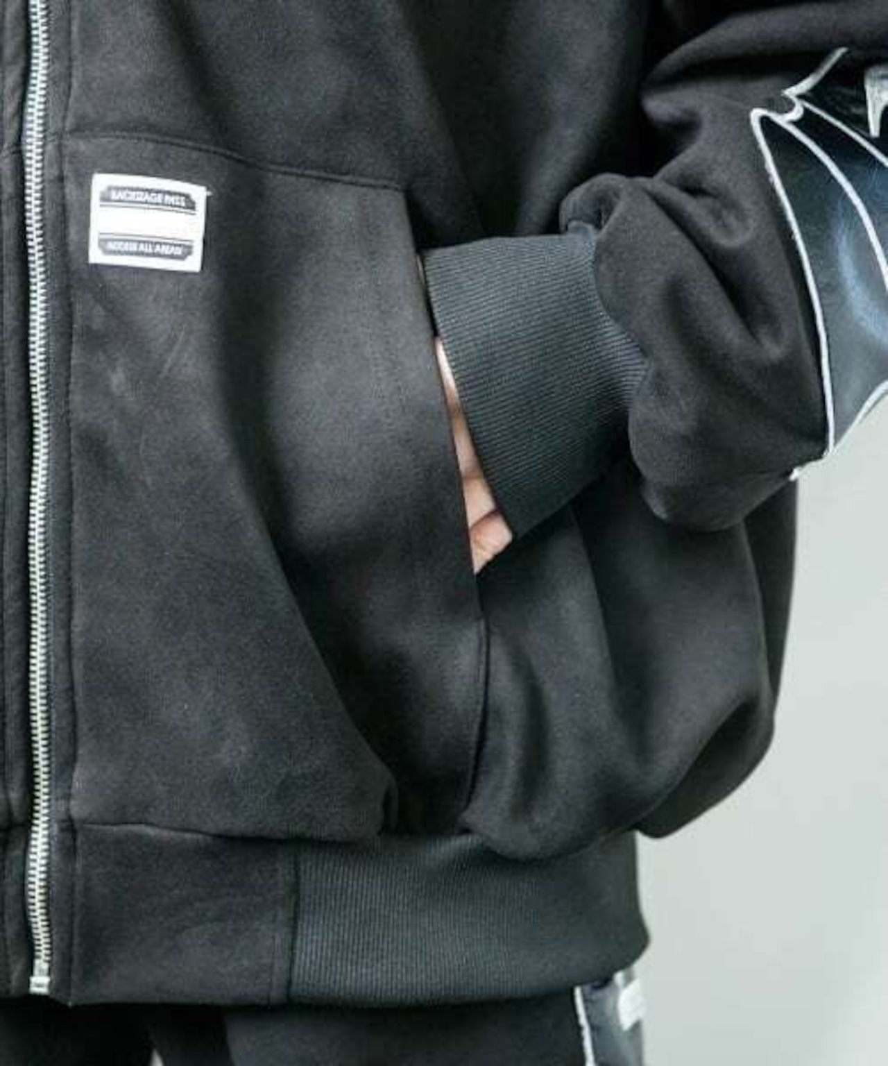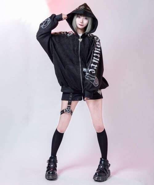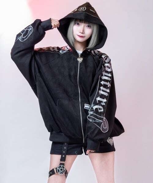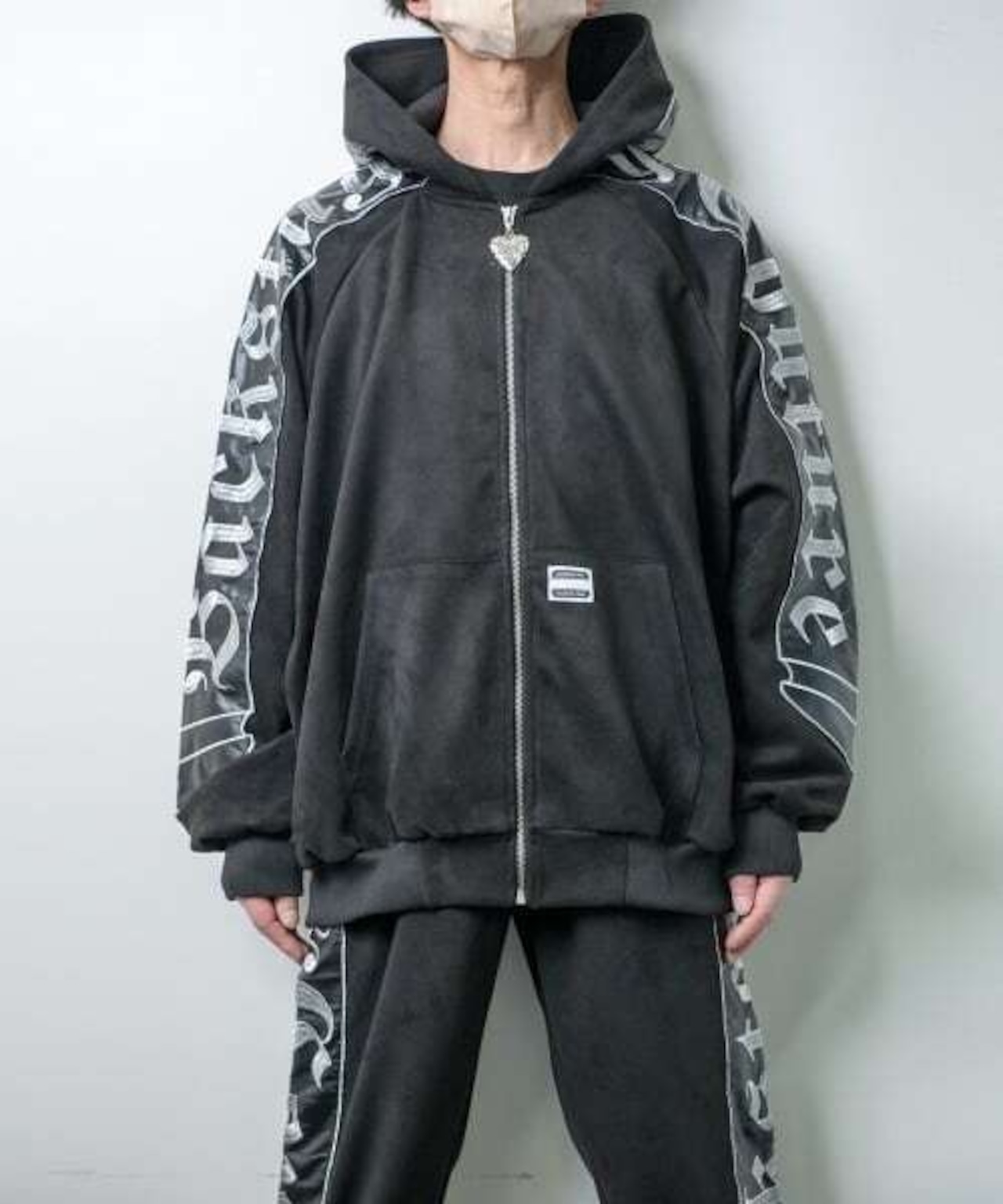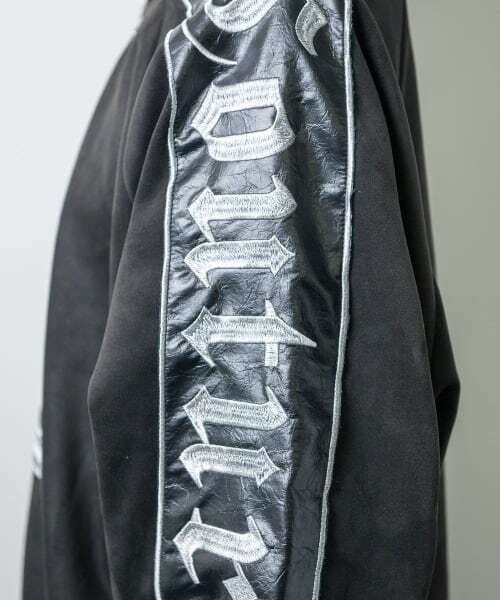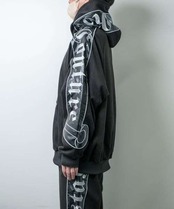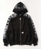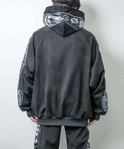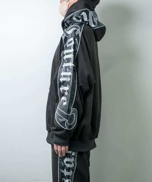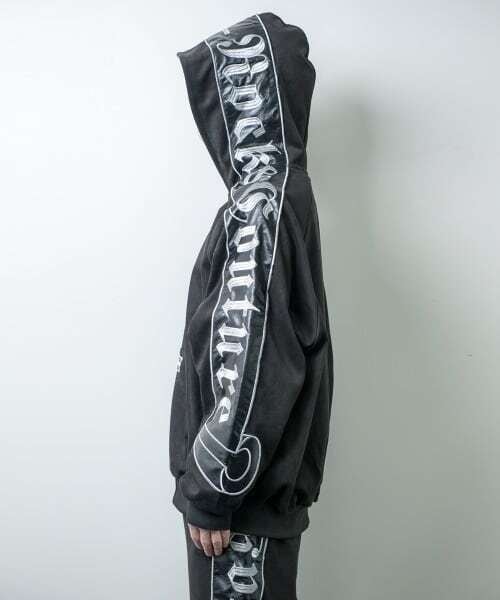 袖からフードにかけてロゴ刺繍を配したインパクト抜群のデザインが魅力です。
