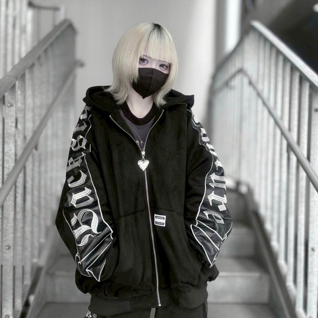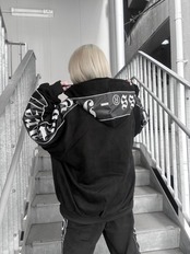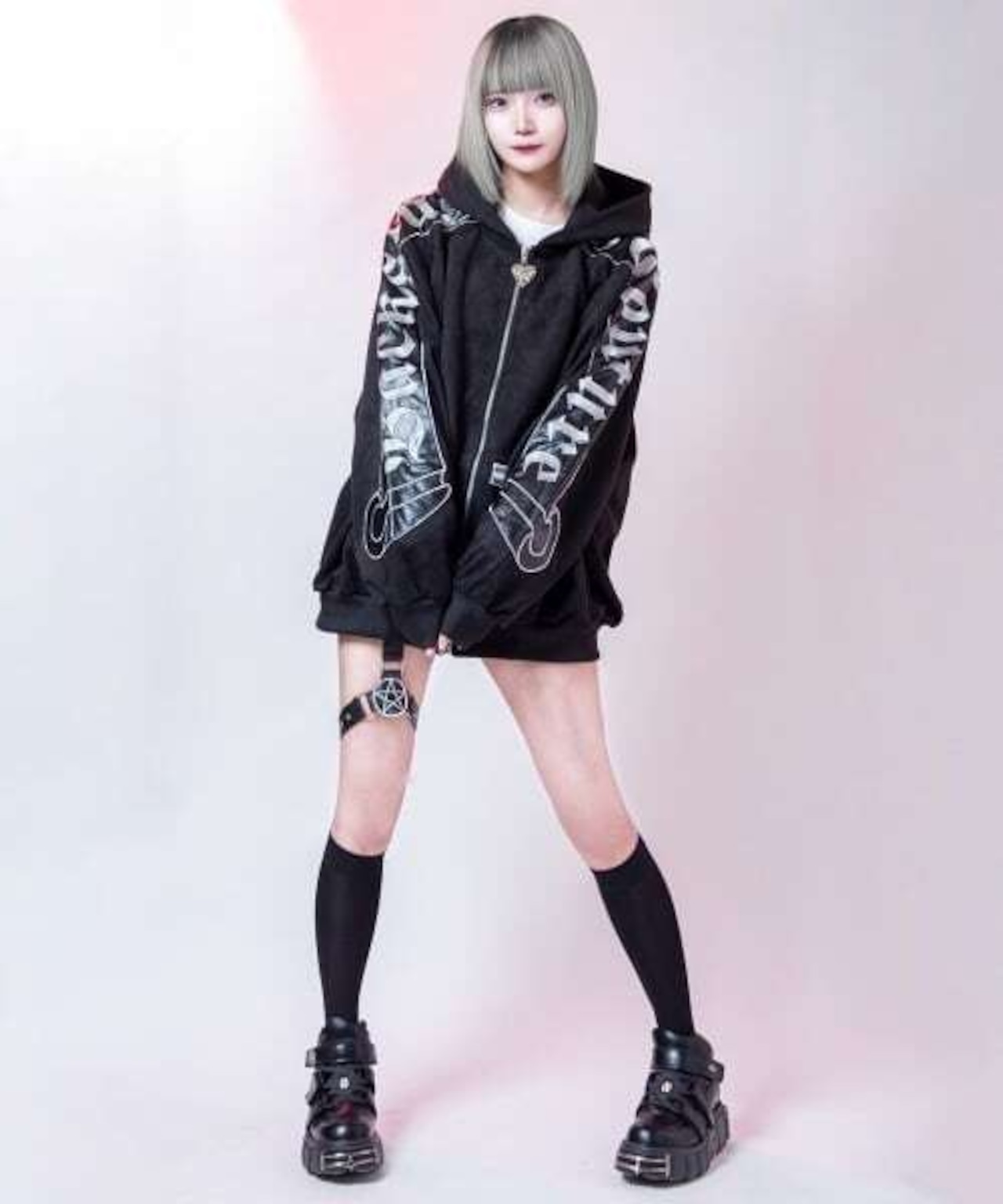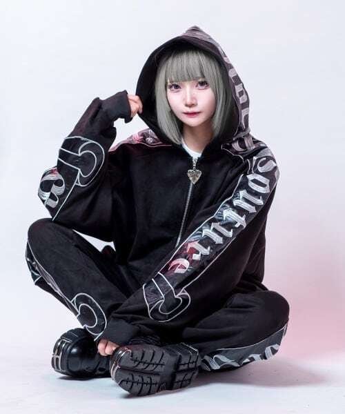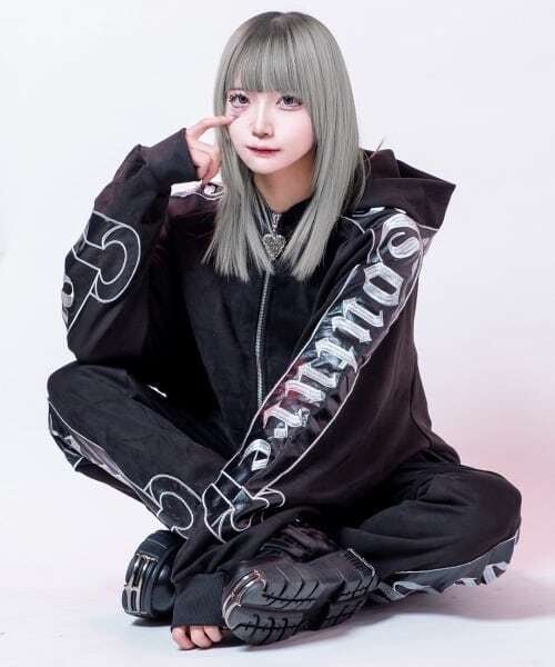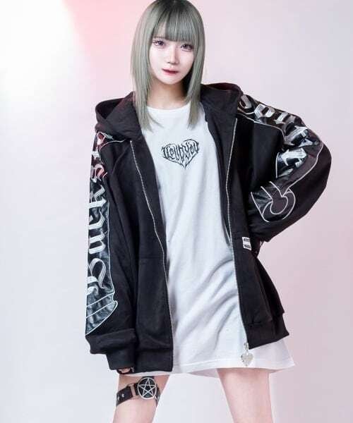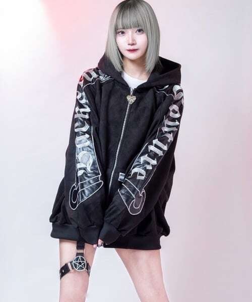 袖からフードにかけてロゴ刺繍を配したインパクト抜群のデザインが魅力です。