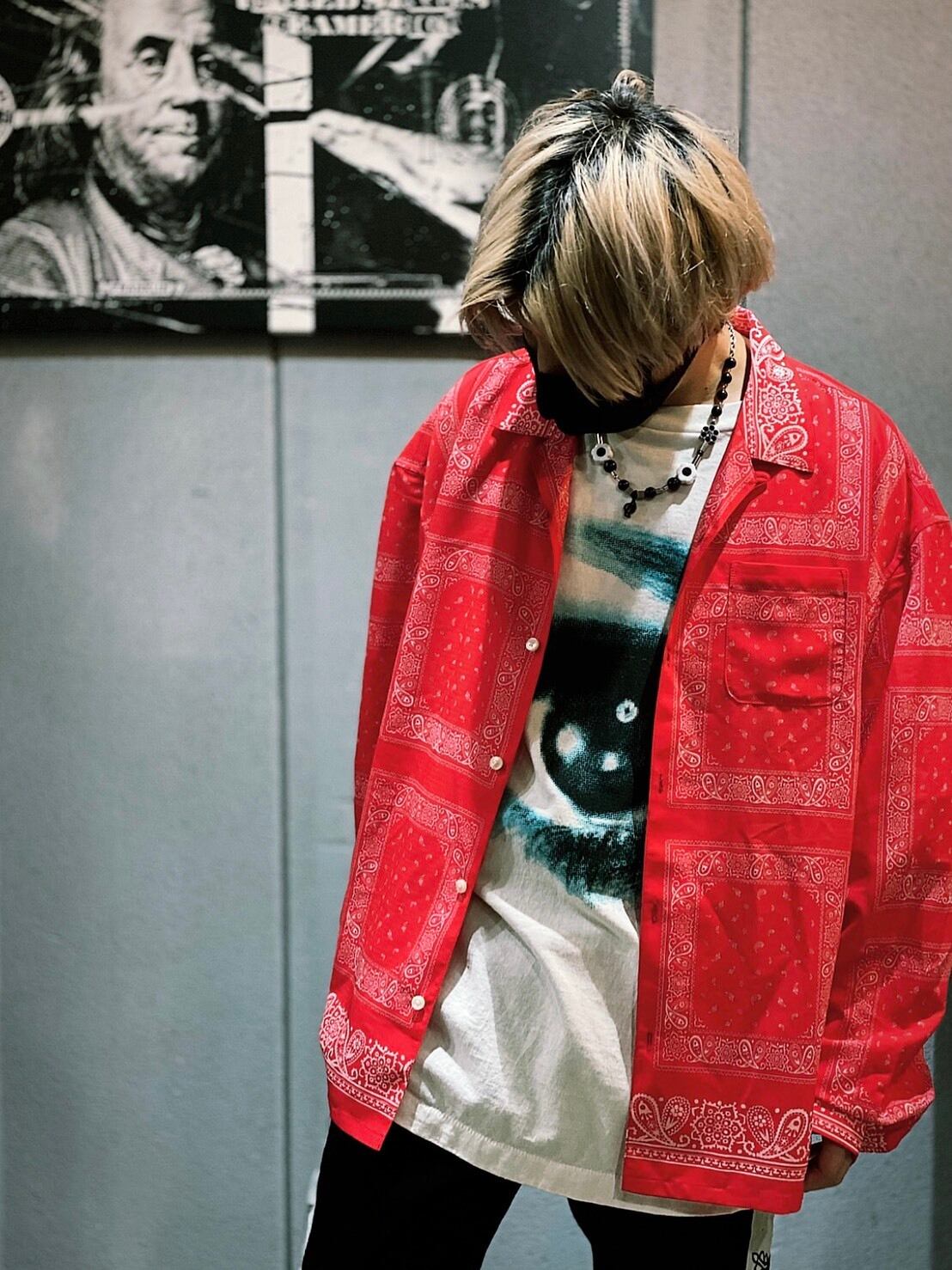 【LISS】BANDANA PATTERN OPEN COLLAR SHIRT(バンダナ柄シャツ/バンダナシャツ/ペイズリー/オープンカラーシャツ/オーバーサイズ/ルーズシルエット/長袖シャツ/トップス)