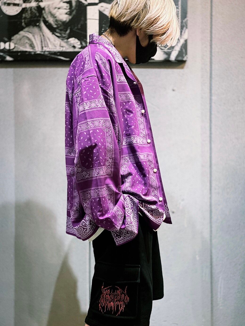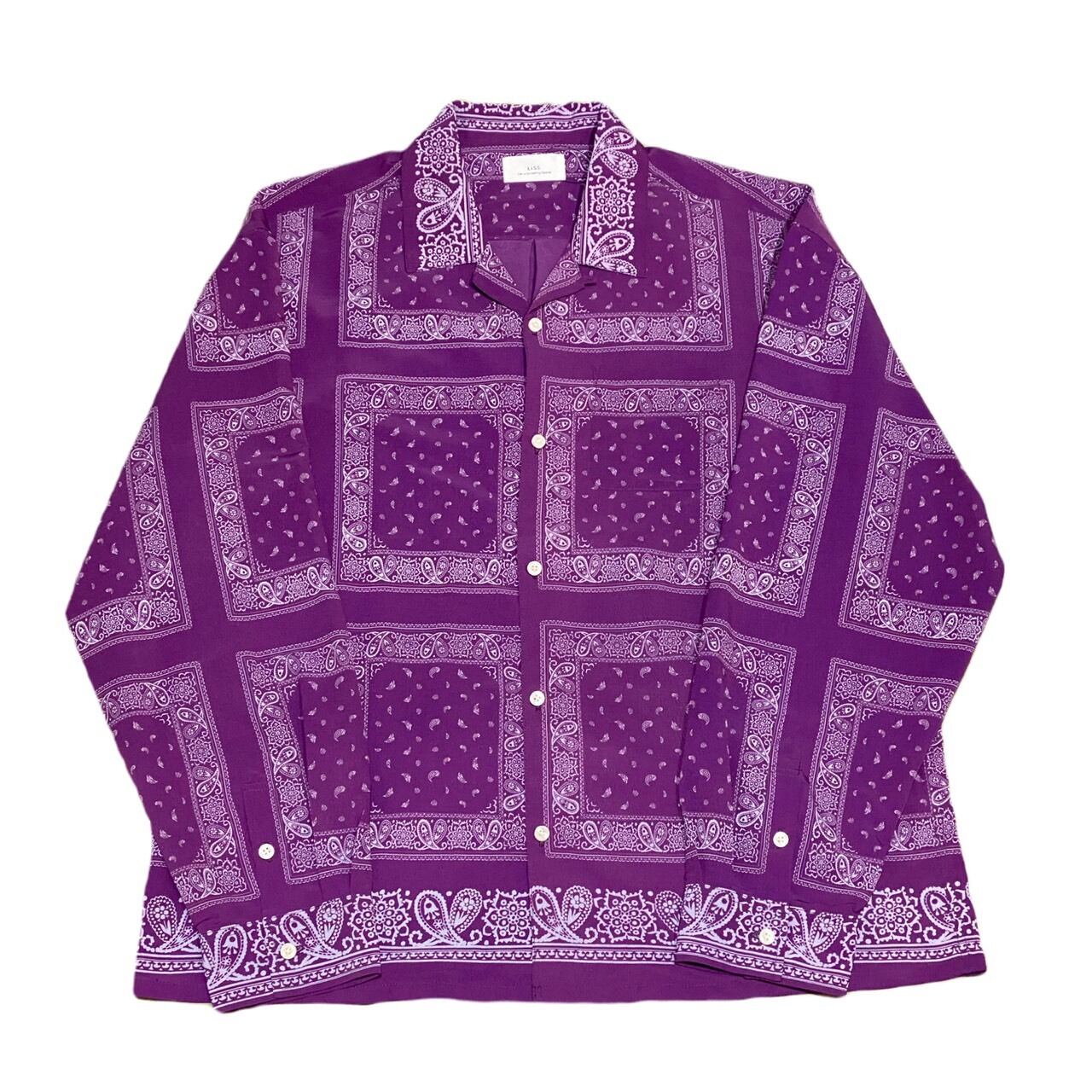 【LISS】BANDANA PATTERN OPEN COLLAR SHIRT(バンダナ柄シャツ/バンダナシャツ/ペイズリー/オープンカラーシャツ/オーバーサイズ/ルーズシルエット/長袖シャツ/トップス)